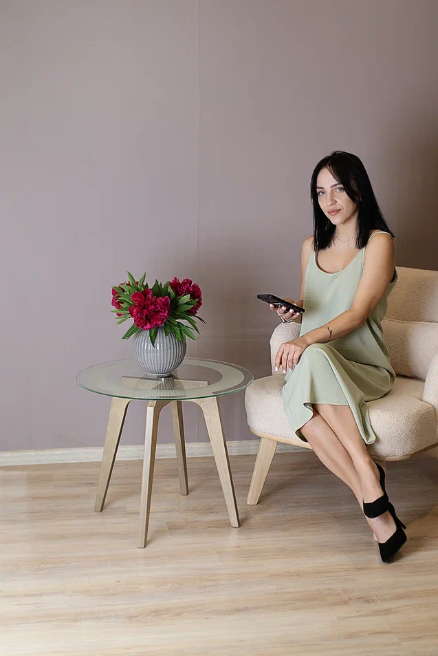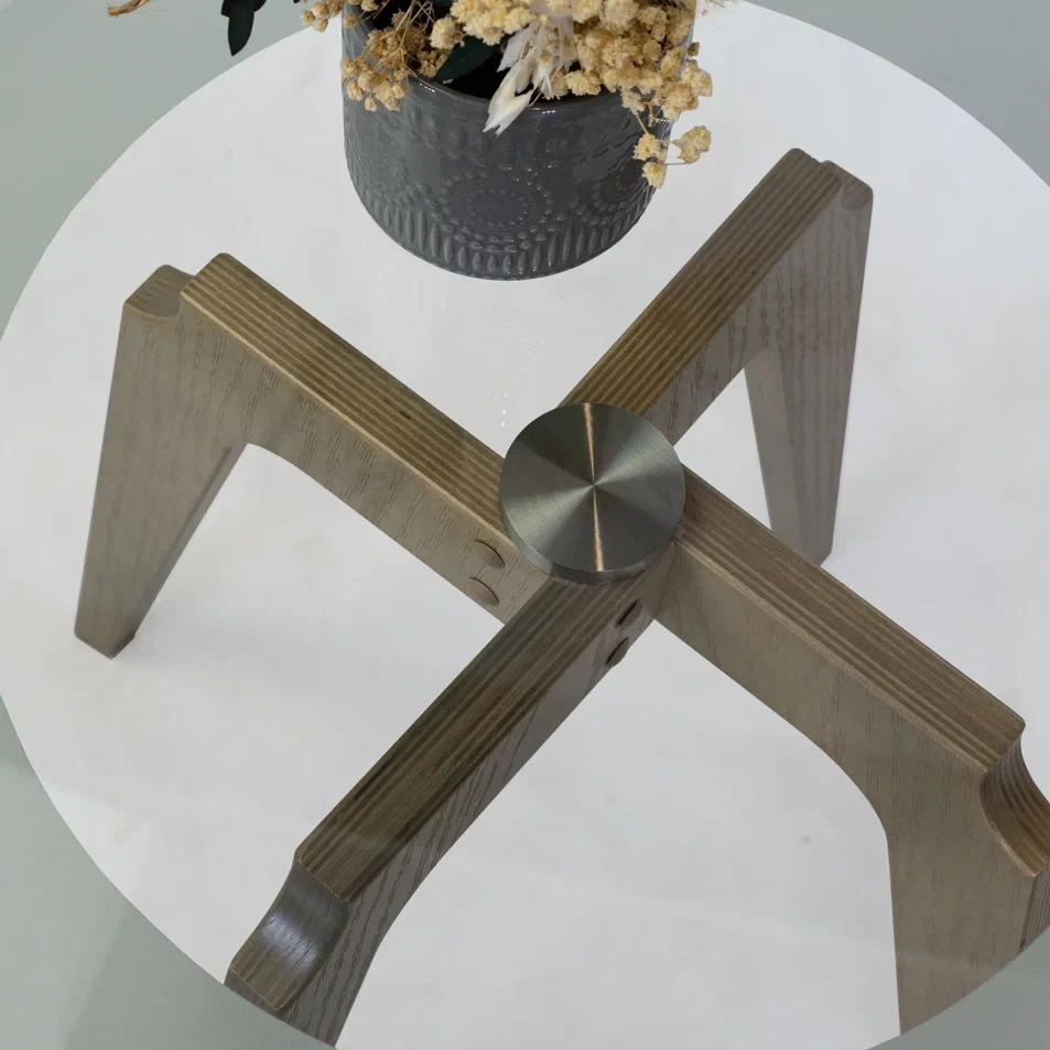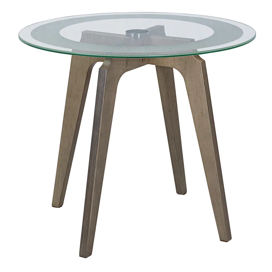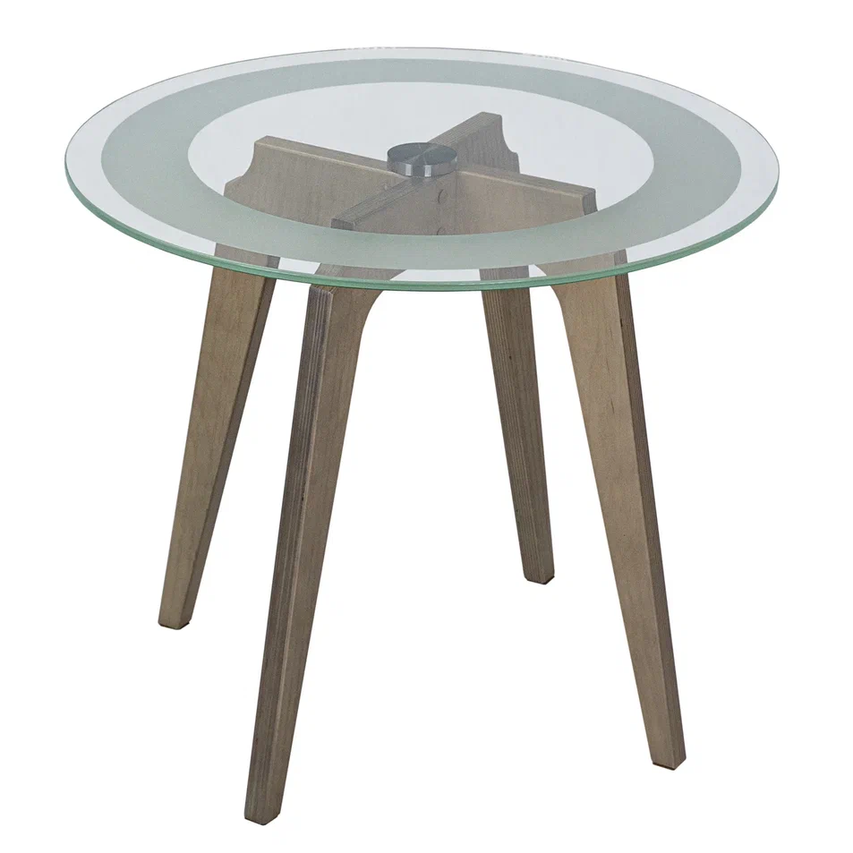 Журнальный столик Рилле 447 – это утончённый и компактный предмет мебели, подходящий для любого интерьера от классики до лофта. Рилле 447 прекрасно справляется с ролью как журнального, так и прикроватного или придиванного столика.Четыре опоры, выполненные из шпона берёзы (толщиной 24 мм), обеспечивают устойчивость, надёжность и долгую службу, а покрытие эмалью и тиснение с имитацией рисунка дерева придают столику естественную красоту. Изящность столешницы диаметром 580мм из стекла толщиной 8мм подчёркивает эстетичный пескоструйный рисунок шириной 70мм, создающий внутреннюю окружность. В сочетании с геометрическим крестообразным узором он добавит уникальности любому интерьеру.