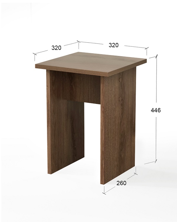 Табурет изготавливаются из распространенного и недорогого материала – ламинированное ДСП 16мм. Материал обладает повышенной устойчивостью к царапинам и повреждения. Края обработаны кромкой.Табурет для кухни – простая, популярная мебель от белорусского производителя, которая есть практически в каждом доме или даче.