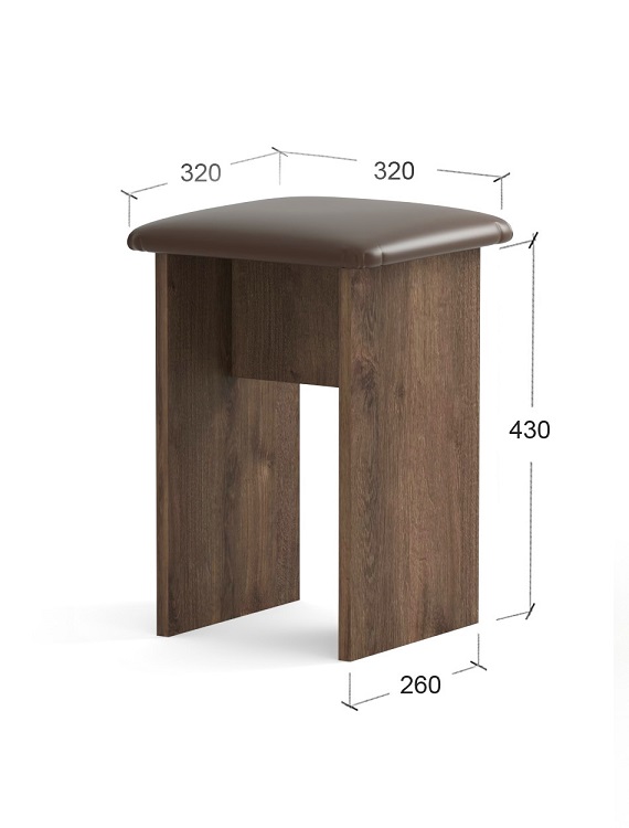Табурет с мягким сидением от белорусского производителя мебели.Корпус табурета изготавливаются из распространенного и недорогого материала – ламинированное ДСП 16мм. Материал обладает повышенной устойчивостью к царапинам и повреждения. Края обработаны кромкой. Сидение изготовлено из ЛДСП (основание) поролон и экокожи.