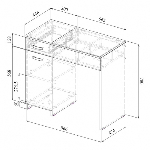 - Кол-во ящиков: 2 (1 - выдвижной, 1 - с 4-мя делениями)