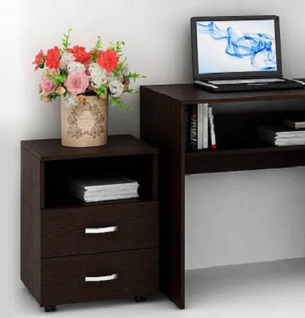 Тумба Альба-2 из ЛДСП очень удобна, так позволяет разместить необходимые предметы на расстоянии вытянутой руки. В выдвижных ящиках используются качественные роликовые направляющие длиной 400 мм. Тип ручки: скоба. Расстояние между винтами 96 мм. Декоративные заглушки в тон мебели для скрытия технологических отверстий.На поверхности и полках тумбы можно разместить не только любимую книгу, но и светильник, или интерьерную скульптуру.