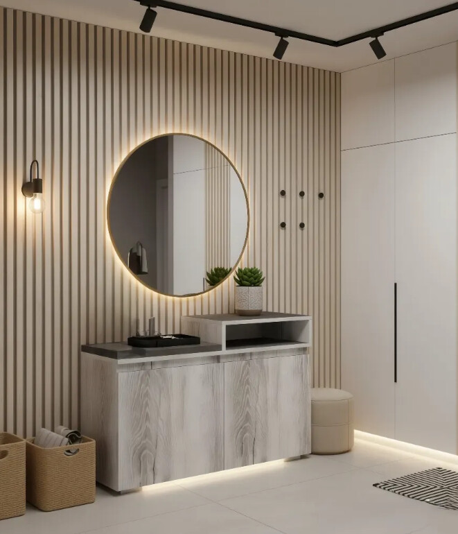 Тумба выполнена в современном минималистичном стиле и представлена в актуальных цветовых вариациях. Она изготовлена без лицевой фурнитуры, что придает изделию чистый и лаконичный внешний вид. Комплектация включает мягкий элемент для удобства использования, а также две распашные двери и нишу для хранения мелочей, позволяя сохранять порядок и функциональность в прихожей или любой другой комнате.Особенность данной модели — универсальность монтажа: её можно собрать как с левой, так и с правой стороны, что обеспечивает гибкость в организации пространства.