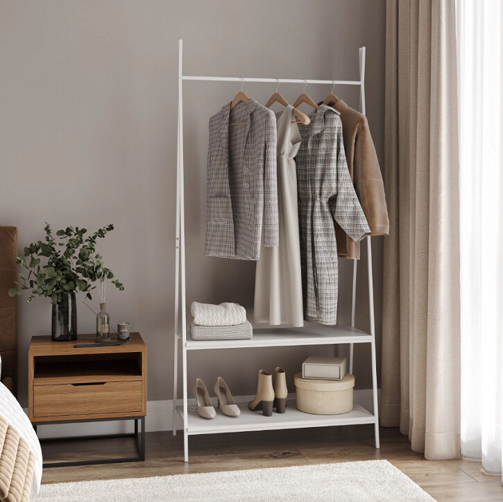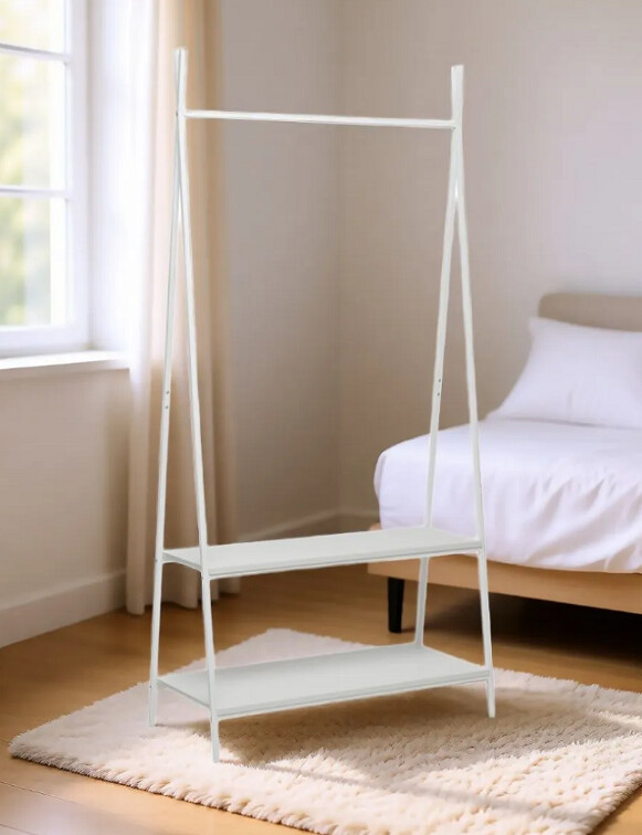 Прочная металлическая рама вешалки Leset Стилвуд 22 оснащена удобной перекладиной для плечиков и двумя вместительными полками для обуви и сумок. Всё необходимое всегда под рукой. Вешалка собирается за 10 минут и отличается устойчивостью даже при интенсивной ежедневной эксплуатации.Минималистичный дизайн в стиле лофт придаст интерьеру особый стиль и продуманность. Высокая, но узкая конструкция идеально подходит для небольших пространств, при этом позволяя разместить более 10 вешалок. Два уровня полок помогут систематизировать обувь, коробки и аксессуары.