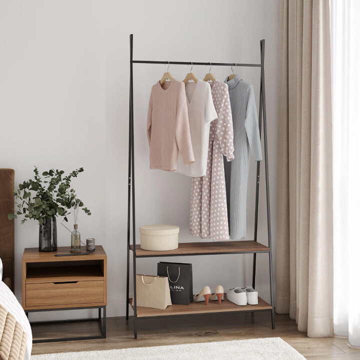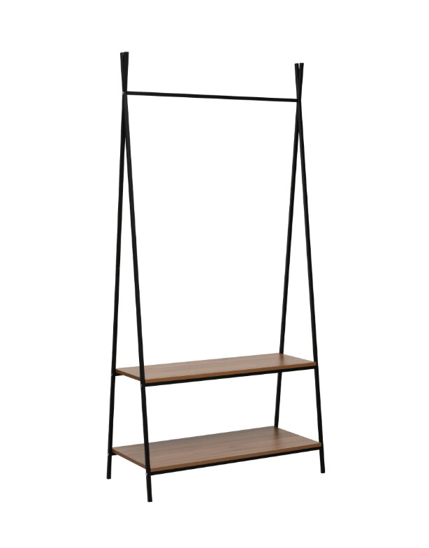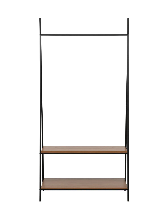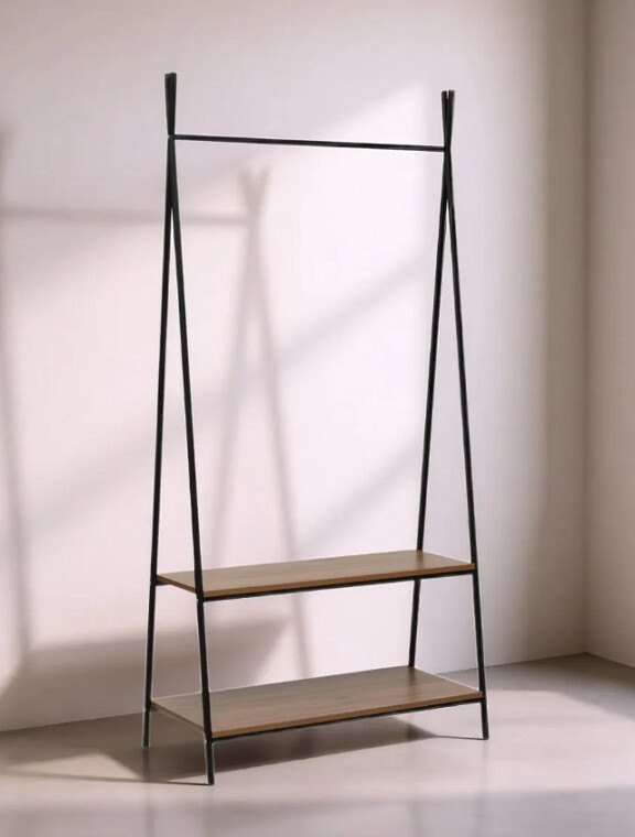 Прочная металлическая рама вешалки Leset Стилвуд 22 оснащена удобной перекладиной для плечиков и двумя вместительными полками для обуви и сумок. Всё необходимое всегда под рукой. Вешалка собирается за 10 минут и отличается устойчивостью даже при интенсивной ежедневной эксплуатации.Минималистичный дизайн в стиле лофт придаст интерьеру особый стиль и продуманность. Высокая, но узкая конструкция идеально подходит для небольших пространств, при этом позволяя разместить более 10 вешалок. Два уровня полок помогут систематизировать обувь, коробки и аксессуары.