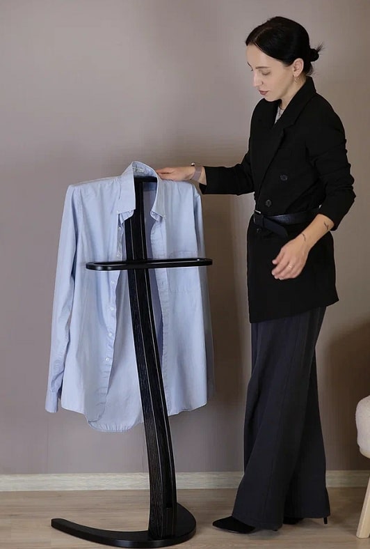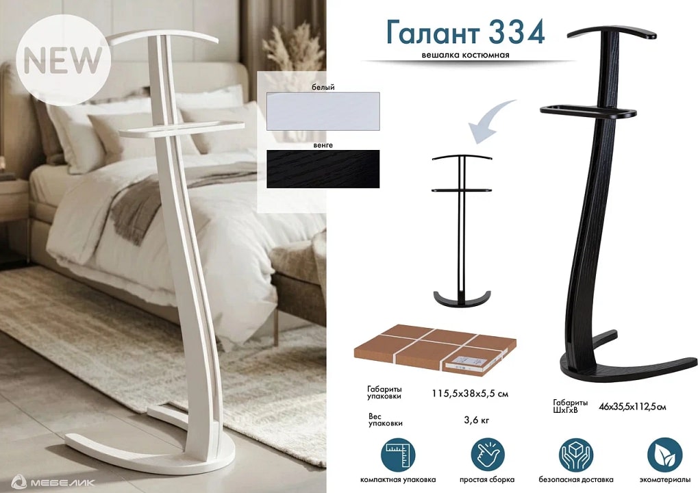 Костюмная вешалка Галант — это перепрочтение классического стиля в сочетании с практичностью. Вешалка выполнена из качественного шпона берёзы, что гарантирует долгий срок службы и надёжность изделия. Изогнутая форма основания, формой имитирует бумеранг. Раздвоенную стойку вешалки завершают изящные плечики. Изделие также обладает удобной брючницей. Костюмная вешалка подходит для хранения самых разных вещей и аксессуаров, на ней вы можете разместить как отдельные элементы, так и полноценный образ. На выбор предоставляются два варианта современных нейтральных расцветок изделия, которые позволят вешалке гармонично сочетаться с вашим домом.