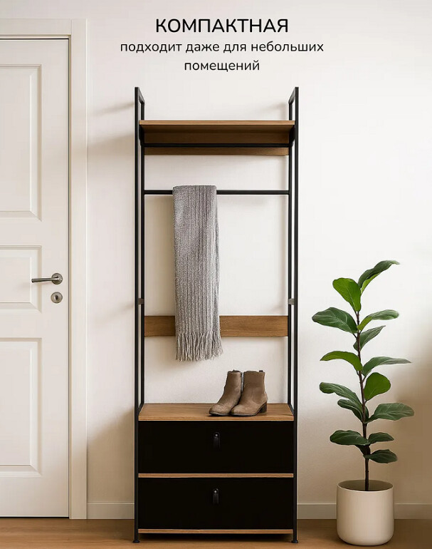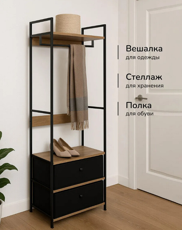 Вешалка напольная для одежды с ящиками станет не только практичным, но и стильным элементом вашего интерьера. Она заменит громоздкие шкафы и тумбы, предоставляя место для органайзеров и корзин.