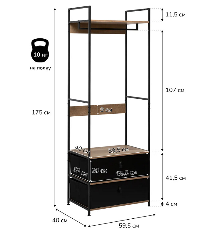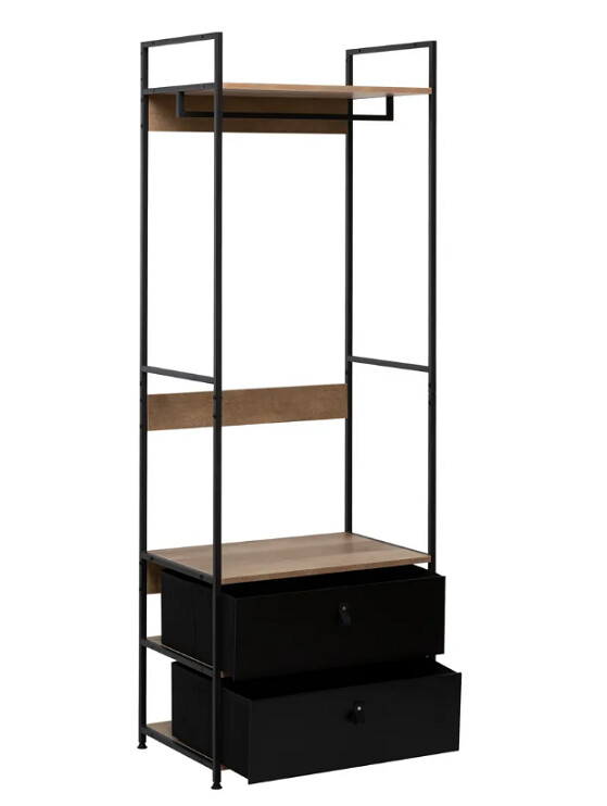 Напольная вешалка Leset Вудми с двумя ящиками — компактное решение для хранения верхней одежды и аксессуаров. Прочный каркас обеспечивает надежную фиксацию штанги и полок, а современный дизайн в сочетании дерева и металла гармонично впишется в интерьер прихожей или гардеробной.Деревянные ящики свободно вместят сумки, головные уборы или корзины, освобождая пространство от хаоса.