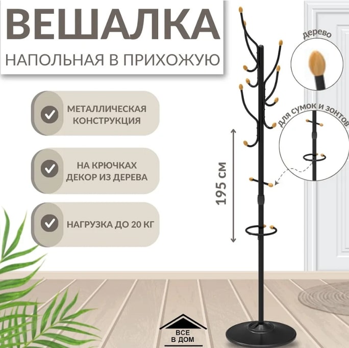 Характеристики:- Тип: Вешалка напольная