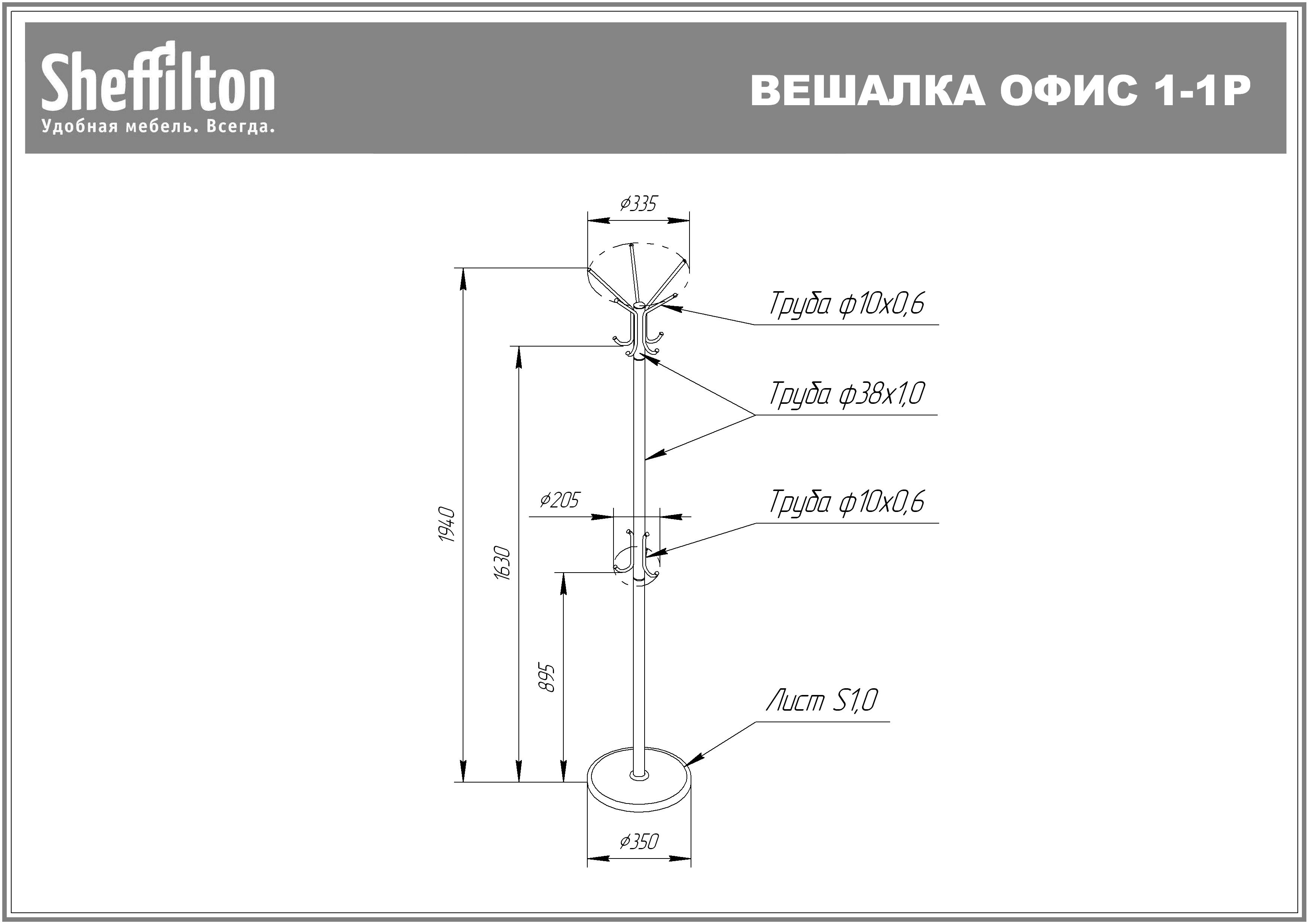 Вешалка напольная Офис создана в классическом стиле. Надежная и устойчивая металлическая вешалка обеспечит не только комфорт, но и стильность вашему помещению. На вешалке вы сможете разместить верхнюю одежду, головные уборы, сумки.Вешалка разборная, выполнена из металла. Порошковое покрытие обеспечивает стойкость к механическим воздействиям. Максимальная нагрузка на крючок 5 кг;