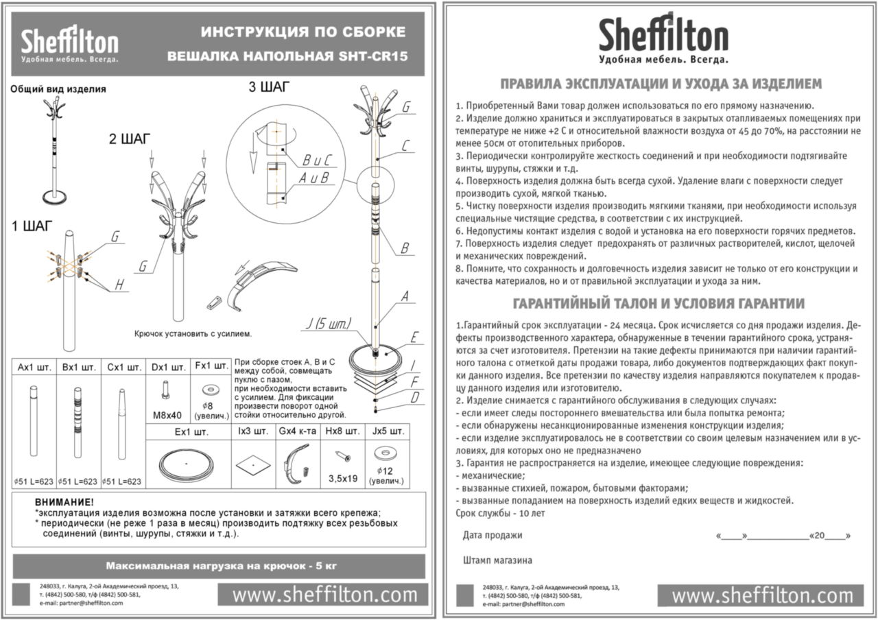 - Максимальная нагрузка: 5 кг (на крючок)