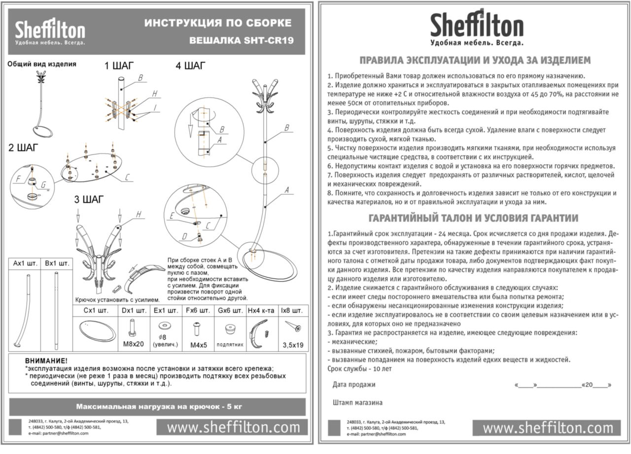 - Максимальная нагрузка: 5 кг (на крючок)