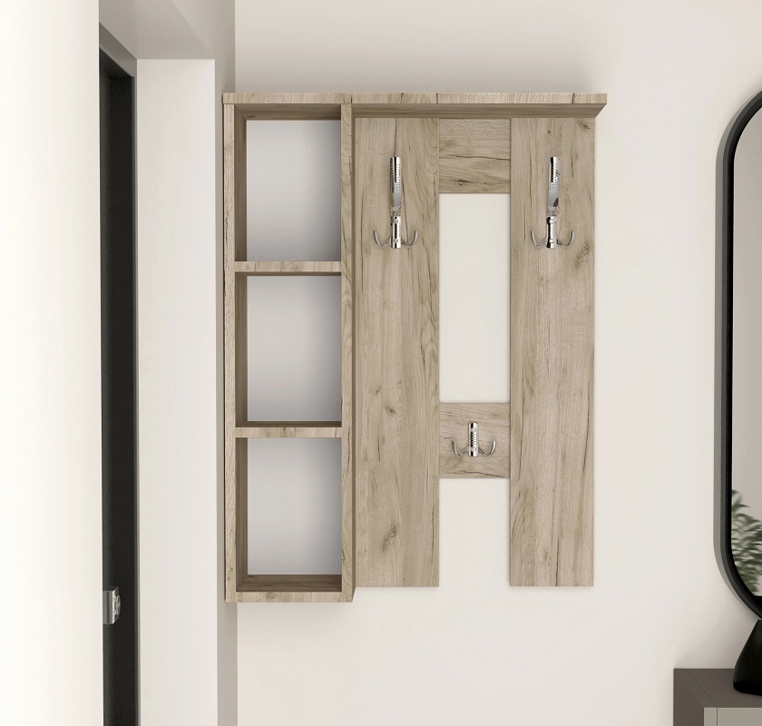 Вешалка настенная –это стильное, удобное и практичное решение для хранения Вашей одежды, Настенная вешалка сочетает в себе лаконичный дизайн, надежность и функциональность, вешалка настенная станет отличным дополнением к вашей прихожей. Одной из главных особенностей вешалки является уникальная конструкция ,которая позволяет собрать ее как на правую сторону так и на левую.Благодаря нашей настенной вешалке Вы сможете организовать пространство в своей прихожей так, чтобы каждая вещь была на своем месте, что сэкономит вам время и улучшит организацию вашего гардероба. Настенная вешалка для одежды предлагает Вам не только удобство хранения, но и дополнительное пространство для аксессуаров или других предметов. Встроенные полки специально разработаны, шапок, сумок и других аксессуаров.