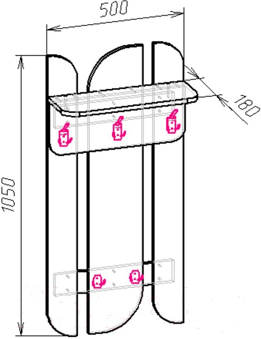 - Габариты: 500 х 212 х 1050 мм