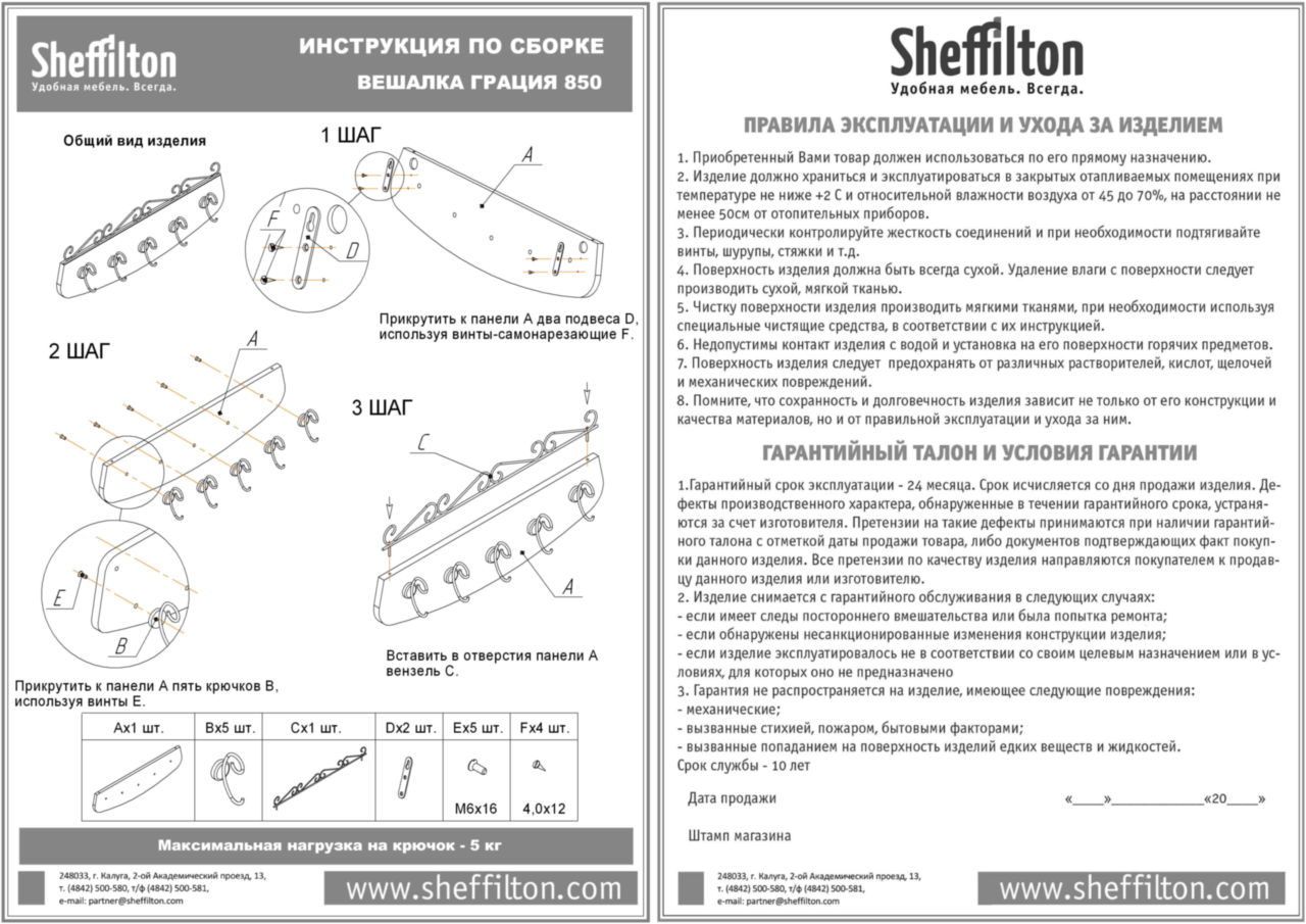 Вешалка Sheffilton Грация обладает высокими качественными характеристиками.Отличается долговечностью, простотой ухода, неприхотливостью. Может выдержать большие нагрузки, что особо важно для больших семей или обустройства офиса. Помимо функциональности можно отметить изысканный внешний вид модели.