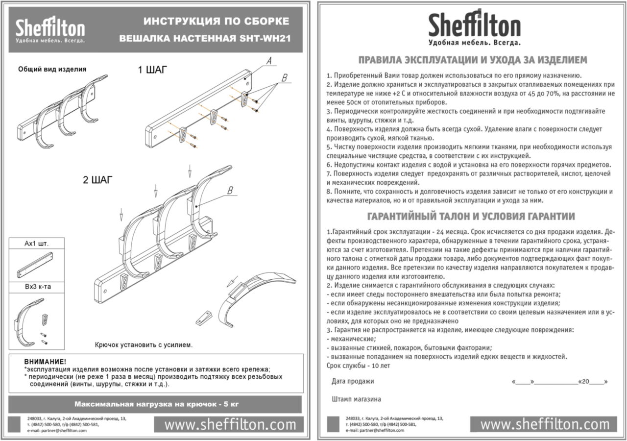 - Максимальная распределенная статическая нагрузка на крючок - 5 кг.