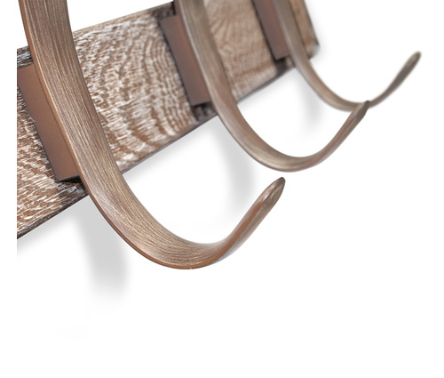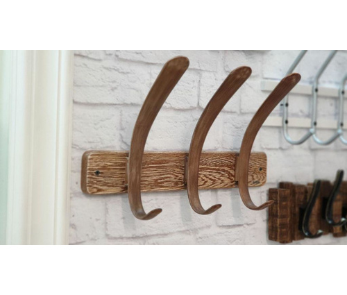 Роскошная настенная вешалка! Основа выполнена из натурального массива дуба и покрыта эффектом браширование для большего визуального восприятия текстуры. Каждый пластиковый крючок вручную покрашен в тон основной планки. В итоге, исполнение вешалки настолько сильное и изящное, что несомненно вызовет восторг при ближайшем знакомстве. Изделие отлично украсит в дизайн домашней прихожей, офиса, кафе, ресторана или бара.- Вешалка выполнена из массива дуба.