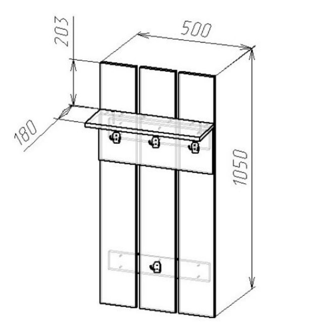 - Габариты В/Ш/Г: 105х50х21,2 см