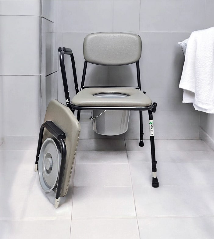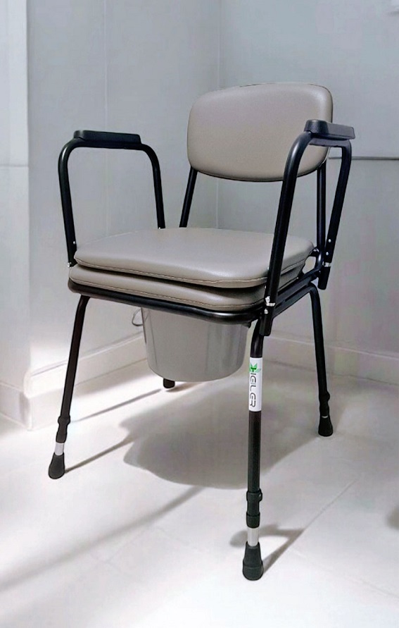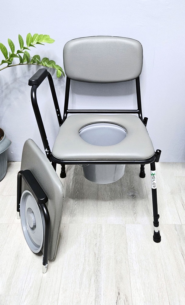 Кресло-туалет Heiler ВА322 со съемными подлокотниками. Дает возможность справлять естественные нужды в комфортных условиях. Стальная рама кресла имеет защитное эмалевое покрытие. Мягкое сиденье и спинка изготовлены из искусственной кожи, что обеспечивает дополнительный комфорт, облегчает гигиеническое обслуживание кресла и поддержание его в надлежащем состоянии.Мягкое сиденье и спинка выполнены из искусственной кожи, что облегчает уход за изделием и поддержание его чистоты. Дополнительная мягкая накладка позволяет использовать кресло-туалет как обычный стул, что делает его универсальным решением для дома, дачи.