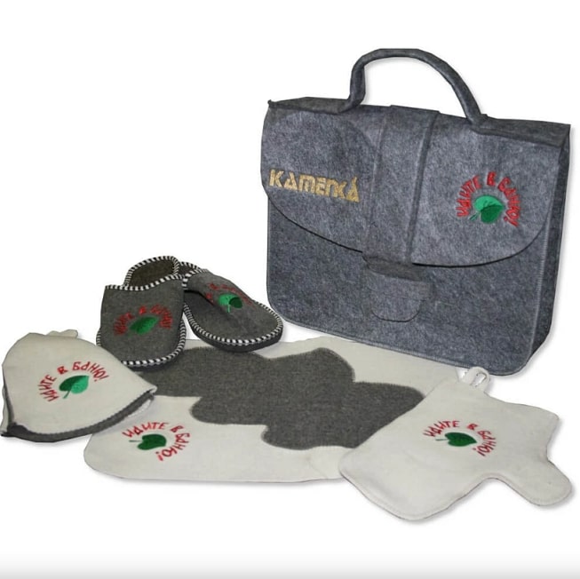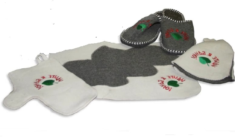 В набор для бани входит: шапка, рукавичка, тапки и коврикХарактеристики: