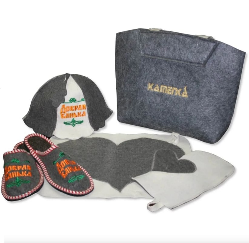 В набор для бани входит: шапка, рукавичка, тапки и коврикХарактеристики: