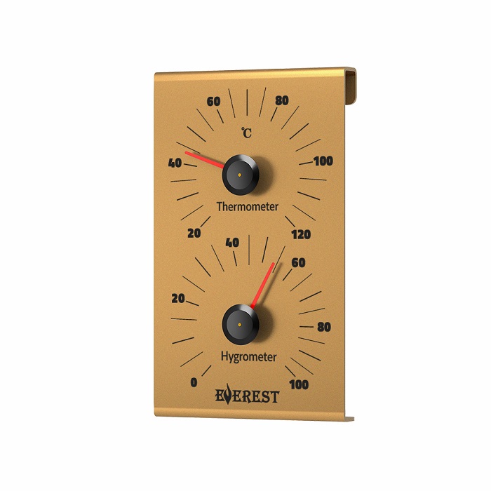 Термогигрометр создан для измерения влажности и температуры воздуха внутри помещения сауны или бани и представляет из себя алюминиевый корпус, содержащим два графичных циферблата.Все материалы экологически чистые, не выделяют вредных веществ и запахов и имеют долгий срок эксплуатации.