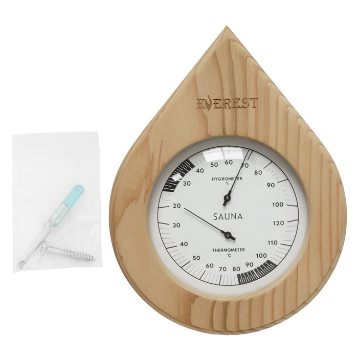 Термогигрометр создан для измерения влажности и температуры воздуха внутри помещения сауны или бани и представляет из себя деревянный корпус с окошком посредине, содержащим круглый циферблат.Все материалы экологически чистые, не выделяют вредных веществ и запахов и имеют долгий срок эксплуатации.