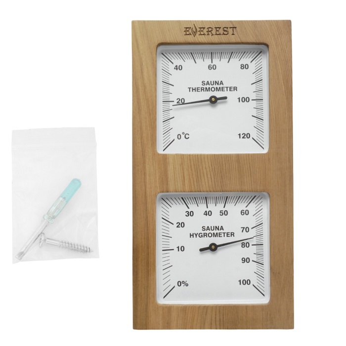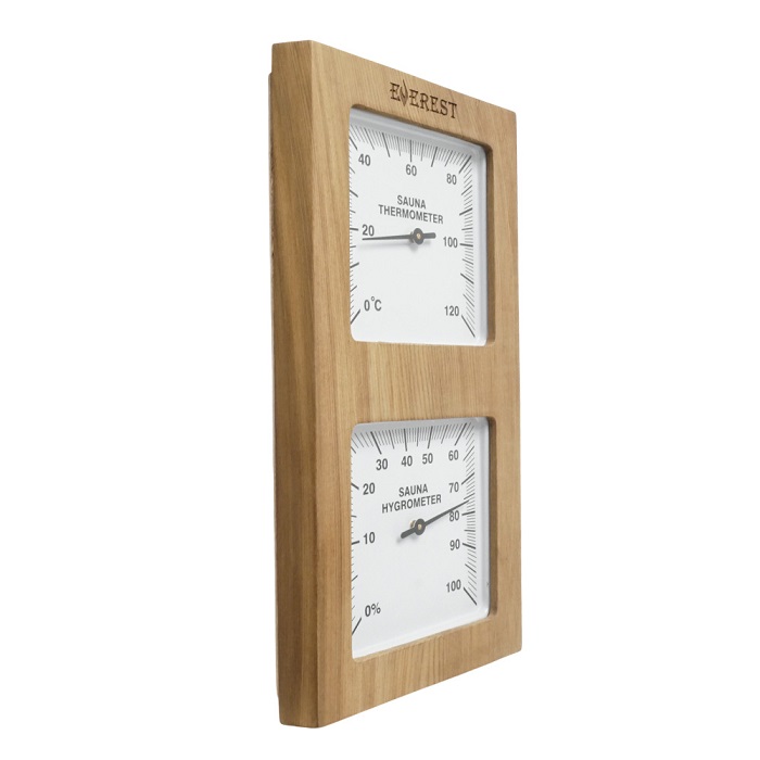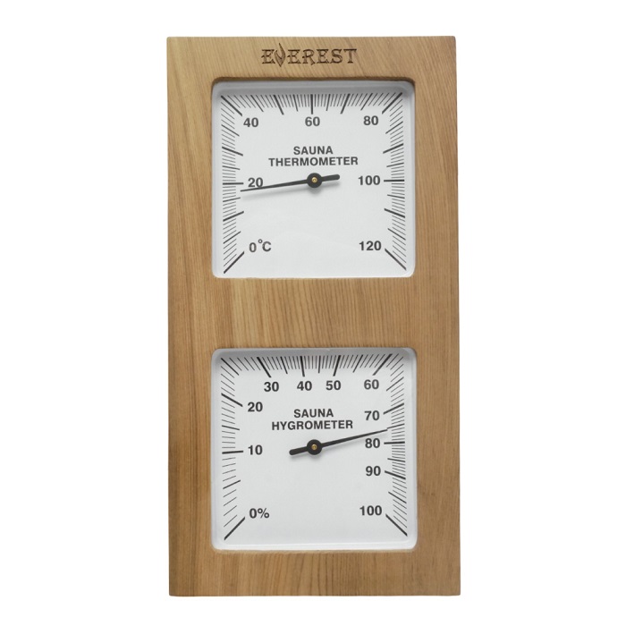 Термогигрометр создан для измерения влажности и температуры воздуха внутри помещения сауны или бани и представляет из себя деревянный корпус с окошком посредине, содержащим два графичных циферблата.Все материалы экологически чистые, не выделяют вредных веществ и запахов и имеют долгий срок эксплуатации.