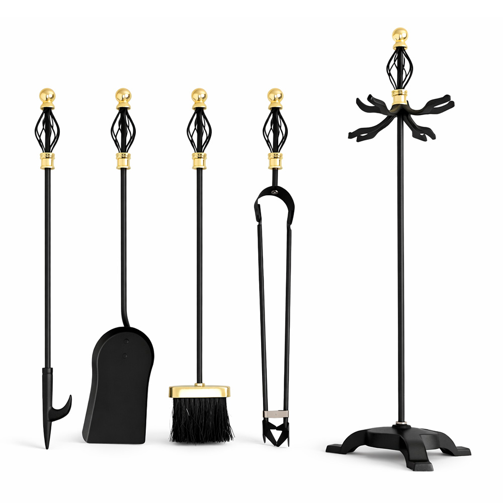 Каминный набор для камина и печи напольный на подставке содержит все необходимые аксессуары для печки бани, камина и мангальной зоны. Набор аксессуаров для камина с подставкой из 4 предметов: совок, кочерга, щипцы, щетка.Полный комплект для полного контроля: