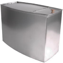 Бак для бани выносной, для дистанционного нагрева воды с помощью теплообменника. Вешается на стену, снизу имеет 3 штуцера (1 с диаметром резьбы 1/2" для слива воды, 2 с диаметром резьбы 3/4" для соединения с регистром-теплообменником ), сверху крышка для заполнения бака водой.
