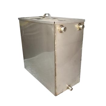 Сварная металлоконструкция бака изготовлена из нержавеющей стали 1,0 (0,9) мм толщиной. Для удобства обслуживания оснащен съемной крышкой. Бак относится к вертикальному типу и устанавливается внутри, либо снаружи помещения при помощи кронштейнов (есть в комплектации). Заливать воду в бак также можно сверху, сняв крышку.