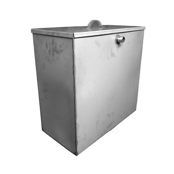 Сварная металлоконструкция бака изготовлена из нержавеющей стали 1,0 (0,9) мм толщиной. Для удобства обслуживания оснащен съемной крышкой. Бак относится к вертикальному типу и устанавливается внутри, либо снаружи помещения при помощи кронштейнов (есть в комплектации). Заливать воду в бак также можно сверху, сняв крышку.