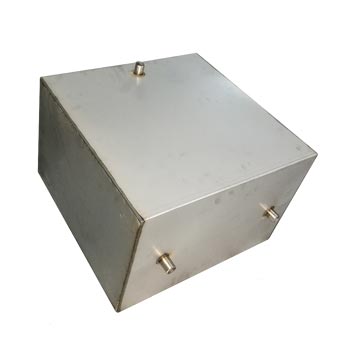 Сварная металлоконструкция бака изготовлена из нержавеющей стали 1,0 (0,9) мм толщиной. Для удобства обслуживания оснащен съемной крышкой. Бак относится к вертикальному типу и устанавливается внутри, либо снаружи помещения при помощи кронштейнов (есть в комплектации). Заливать воду в бак также можно сверху, сняв крышку.