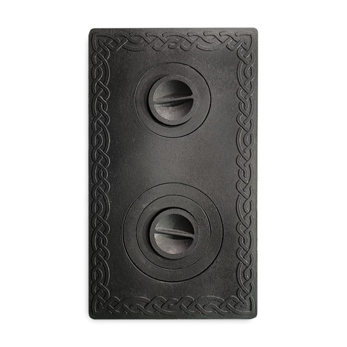 Плита чугунная 2-х конфорочная печная с рёбрами 710х410 — надёжный и долговечный элемент для печей, каминов и варочных конструкций. Изготовлена из прочного чугуна, который равномерно прогревается, долго удерживает тепло и устойчив к высоким температурам.Чугунная печная плита или варочный настил – изделие, совмещающее в себе функции обогрева помещения и варочной панели.