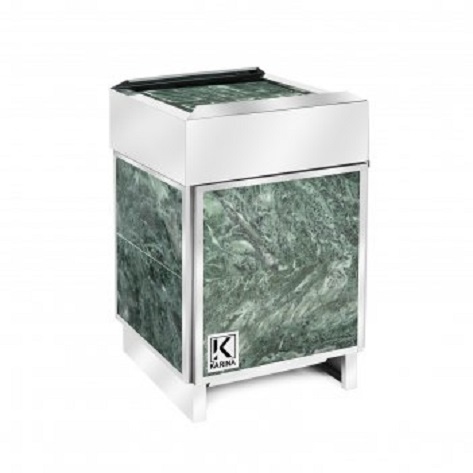 Электрическая печь KARINA Elite 12 Змеевик обладает оригинальным и современным дизайном. Благодаря своему стильному корпусу, она будет замечательно смотреться в интерьере любой бани. Мощность данной электрокаменки составляет 12 кВт, это позволяет ей прогревать помещение объемом до 16 куб. м.Облицовка змеевиком максимально увеличивает теплоотдачу в помещении и способствует увеличению теплоемкости. Толщина горизонтальных плит - 6 см, а боковых стен печи – 1 см.
