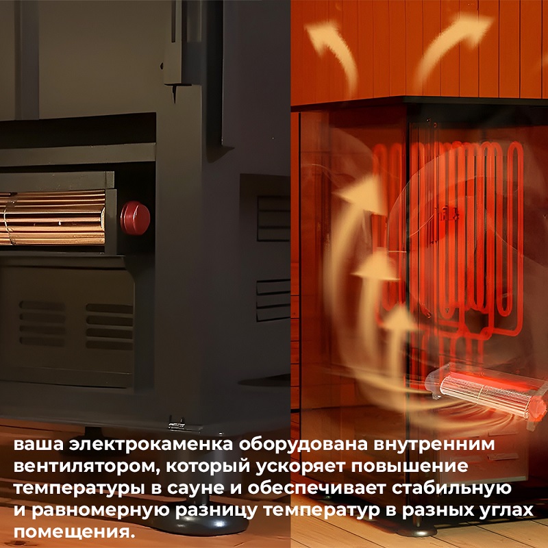 Электрическая печь для бани и сауны EVEREST «BLACK CRYSTAL» предназначена для прогрева воздуха в парной. Её современный и строгий дизайн впишется в любую парную. Корпус сделан из высокопрочной стали, а облицовка из закалённого стекла.В комплекте с печью поставляется многофункциональный пульт управления и датчик температуры со всеми необходимыми кабелями для подключения. Кабель для подключения пульта 6 метров, а кабель для подключения датчика температуры 3 метра. Дизайн пульта выполнен в схожем стиле с электрокаменкой. Выносной датчик температуры позволит точно управлять температурой печи в парной. Встроенный в электрокаменку конвектор, позволит максимально быстро распределить мелкодисперсный пар и воздух.