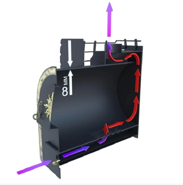 • встроенный стальной колосник 8 мм рассчитан на долгий срок службы (в дальнейшем может быть заменен на чугунный);