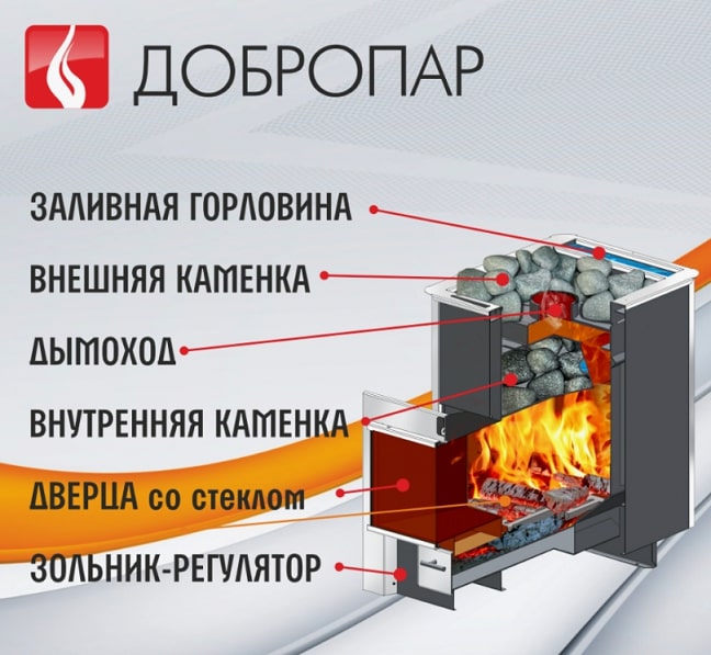 Отличительной чертой печи является система двойного парообразования, которая позволяет получить качественный легкий пар. Две последовательные каменки (сначала закрытая, потом открытая) доведут пар до нужных кондиций. За счет подачи воды в открытую или закрытую каменку вы можете создавать режим парения от «русской бани» — с умеренной температурой при повышенной влажности, до «финской сауны» — с повышенной температурой и пониженной влажностью.Элементы топки и каменки печи изготовлены из конструкционной стали толщиной 4 мм, максимально термонагруженные места топки имеют суммарную толщину металла 8 мм. Это позволило увеличить ресурс эксплуатации печи.