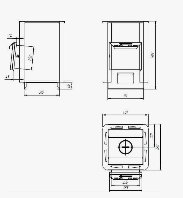 ВНИМАНИЕ! Элементы дымохода и камни не входят в комплект печи и приобретаются отдельно.