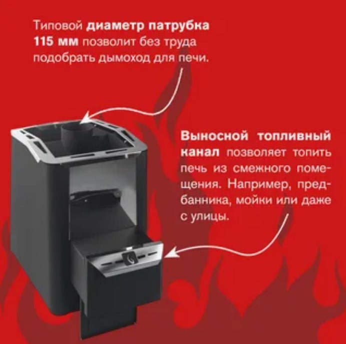 ВНИМАНИЕ! Элементы дымохода и камни не входят в комплект печи и приобретаются отдельно.