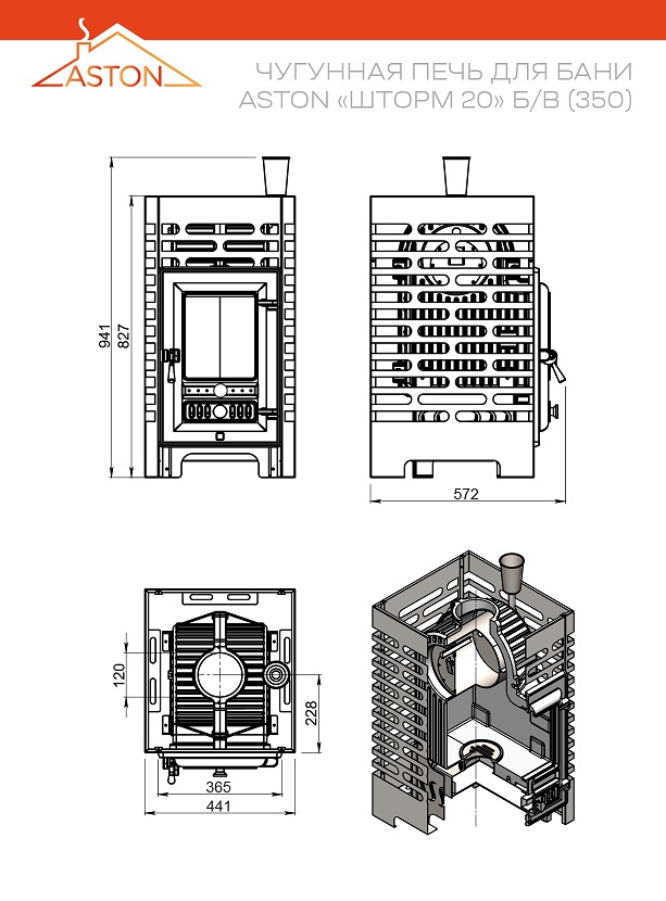 Чугунная печь ASTON Шторм с закрытой каменкой, 18 кВт мощности, идеальный баланс между температурой и влажностью — вот только некоторые преимущества новой чугунной печи для бани.