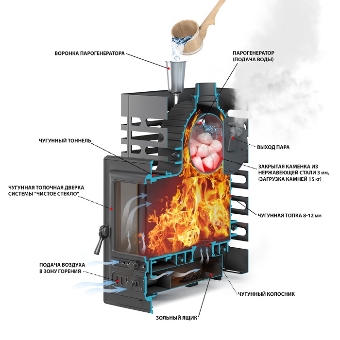 - Материал закрытой каменки: Нержавеющая сталь AISI 430