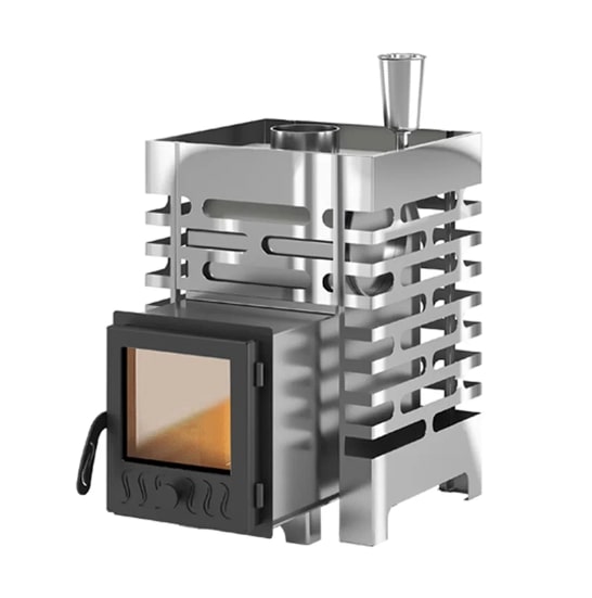 Стальная банная печь на дровах ASTON 12 INOX, с топочным выносом, сеткой для камней и парогенератором, обогревает парную объемом от 6 до 14м3.Банная печь ASTON из нержавеющей стали марки AISI 430 устойчива к окислению и прогару. Сваренные роботом швы обеспечивают отличное качество печи.