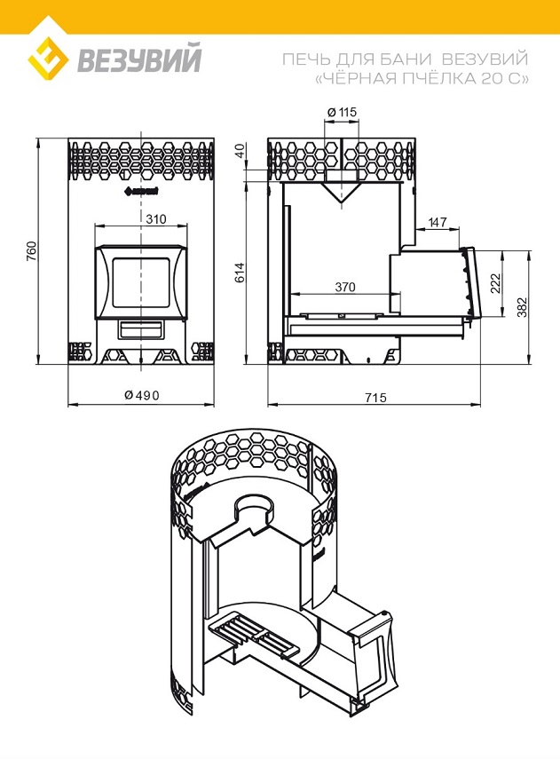 Печь для бани Везувий Чёрная Пчёлка 20 С