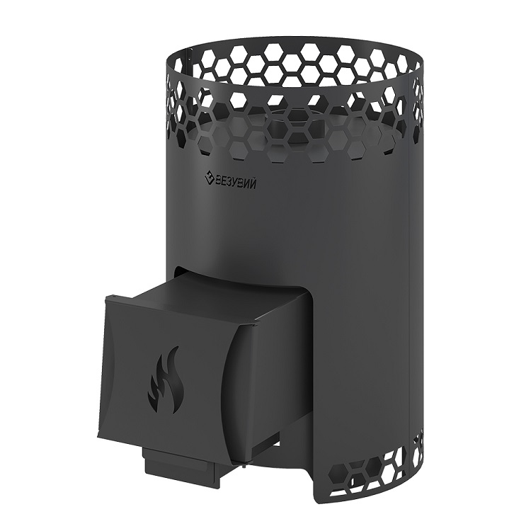 Печь сделана из особо прочной котловой стали марки 09Г2С с толщиной стенок от 3 до 4 мм. Дизайн корпуса печи выполнен в виде сот. Диаметр дымохода 115 мм. Дверка имеет правое и левое открытие. Улучшенная загрузка дров благодаря расположению двери под углом.Печи представлены как со стеклом, так и без него. Так же есть возможность дополнить печь баком на 50 литров, подиумом высотой в 70 мм и фронтальным экраном.