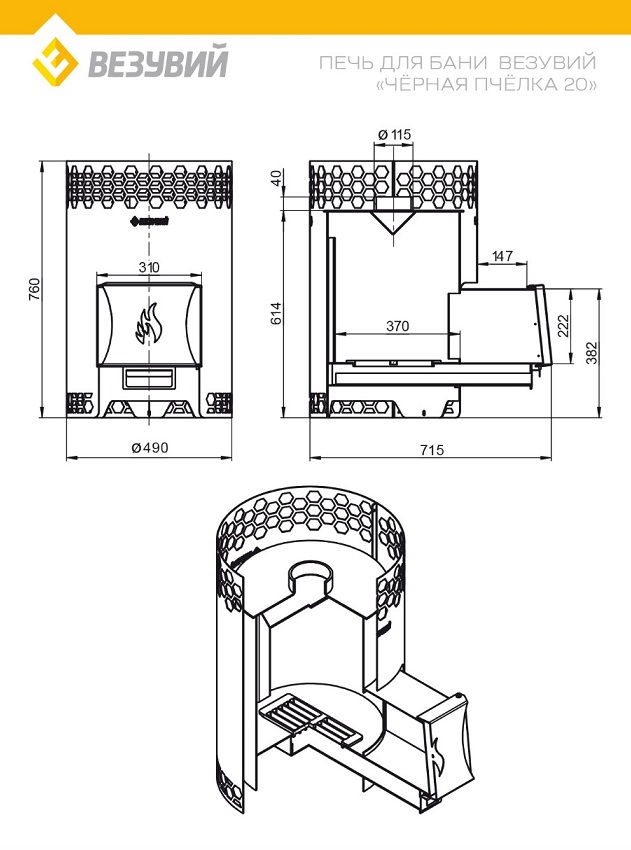Печь для бани Везувий Чёрная Пчёлка 20