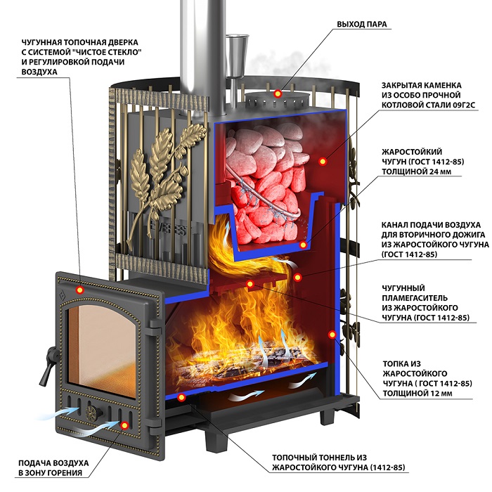 - Материал топки: Жаростойкий чугун (ГОСТ 1412-85)