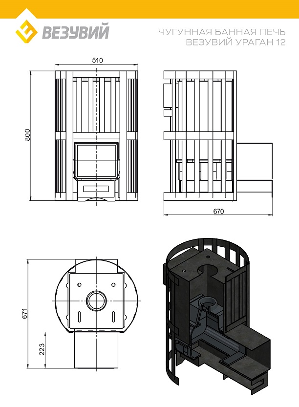 Печь ВЕЗУВИЙ Ураган Ковка 12 (260) диаметр дымохода: 115 мм