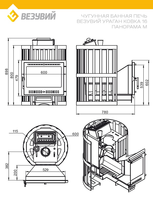 Печь ВЕЗУВИЙ Ураган Ковка 16 Панорама М