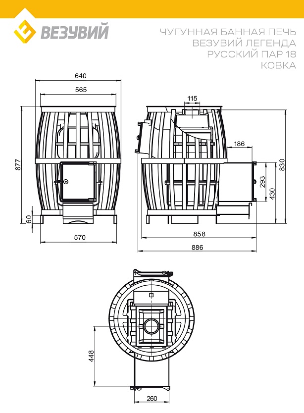 Печь ВЕЗУВИЙ Легенда Русский пар Ковка 18 (270) диаметр дымохода: 115 мм