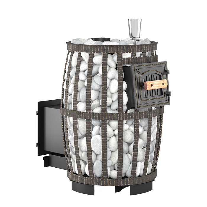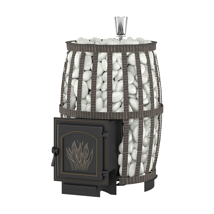 Все элементы топки отлиты из чугуна и соединены между собой с помощью болтового соединения через термостойкий шнур и герметик, а закрытая каменка изготовлена из жаростойкой высоколегированной 4 мм нержавеющей стали.